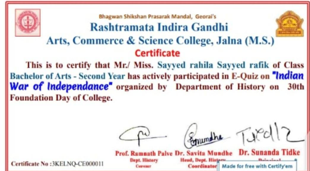 To create awareness among the students about Indian ancient History.